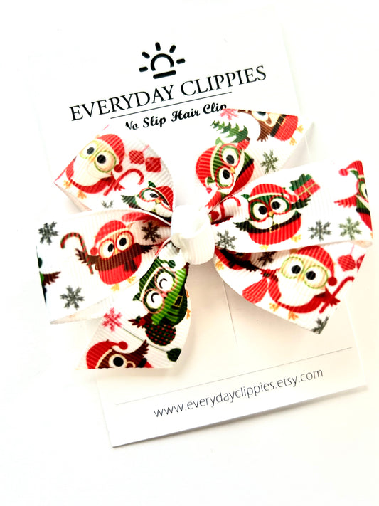 Christmas Owls Hair Bow