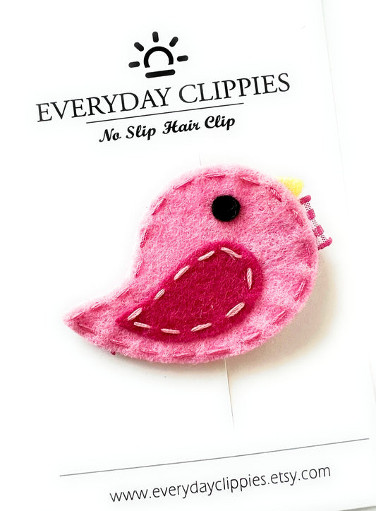 Pink Felt Bird Hair Clip