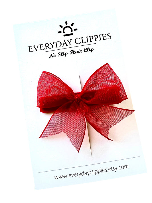 Red Organza Bow Hair Clip