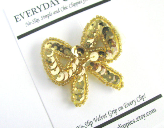 Gold Sequin Beaded Bow Hair Clip