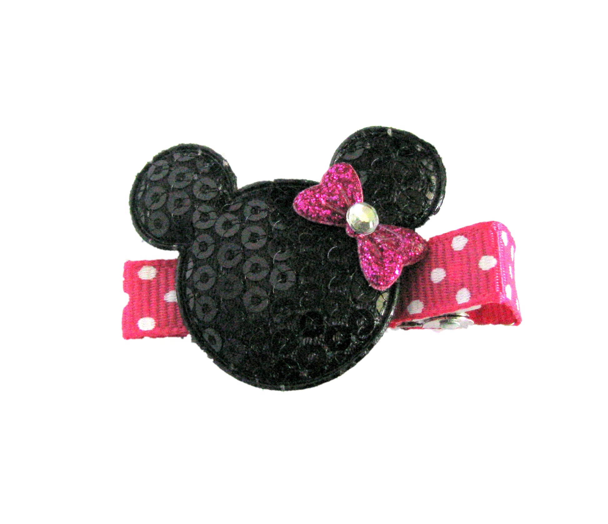 Sequin Mouse with Hot Pink Bow Hair Clip
